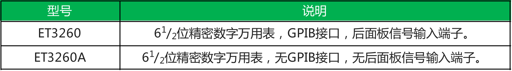 ● 6 1/2位分辨率(ET3260/ET3260A);超量程显示:量程的120%